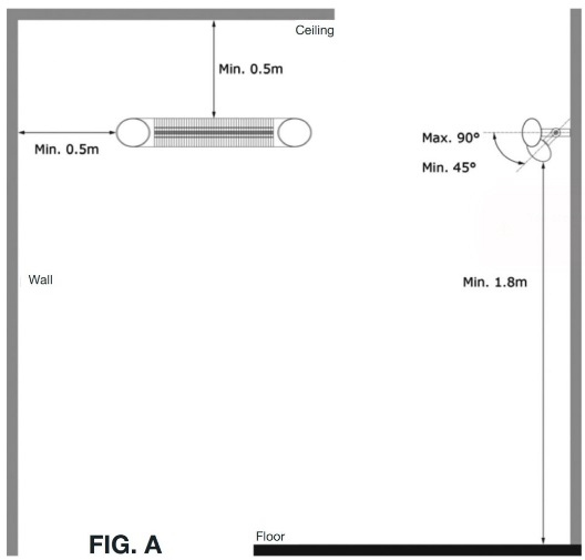 Обогреватель Aero универсален, он может быть установлен на стене или подвешен на потолок. Настенные крепления поставляются в комплекте.