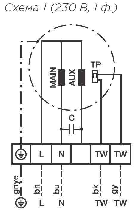 Регулирование скорости вентиляторов EF осуществляется путем изменения напряжения за счет использования пятиступенчатых трансформаторов TRT или однофазных плавных регуляторов скорости SRE. К одному регулятору можно подключить несколько вентиляторов при условии, что общий ток вентиляторов не превышает номинальный ток регулятора. В двигатели вентиляторов встроены защитные термоконтакты, требующие подключения внешнего защитного термореле.