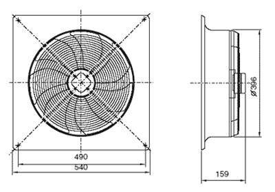 Осевой вентилятор AXW оснащен высокоэффективной крыльчаткой с серповидными лопатками, двигателем с внешним ротором и встроенной системой термозащиты.