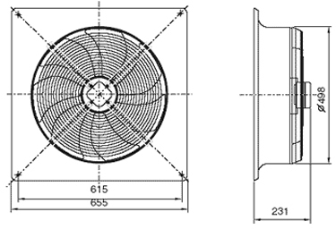 Осевой вентилятор AXW оснащен высокоэффективной крыльчаткой с серповидными лопатками, двигателем с внешним ротором и встроенной системой термозащиты.