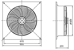 В вытяжном вентиляторе AXW используется трехфазный двигатель с внешним ротором и встроенными термоконтактами. Эффективное охлаждение двигателя достигается за счет его расположения непосредственно в потоке воздуха, что обеспечивает высокую надежность и продолжительный срок службы.