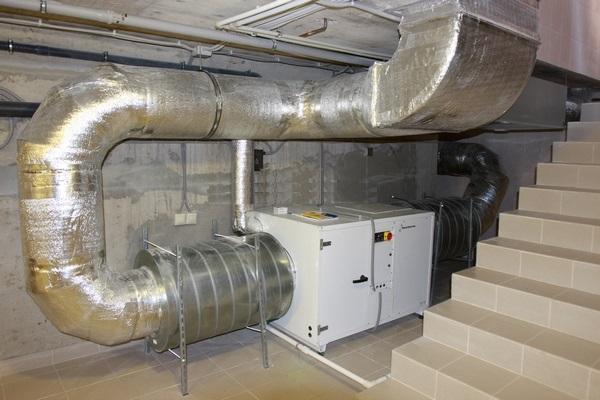При использовании осушителя воздуха, при необходимости, можно организовать дополнительный обогрев помещения. Для этого в выходном воздуховоде можно установить водяной калорифер (заказывается отдельно). Отведение и раздачу теплого воздуха при этом необходимо организовать через воздуховоды. Например, разместить выходные отверстия вблизи окон для осушения конденсата в холодное время года.
