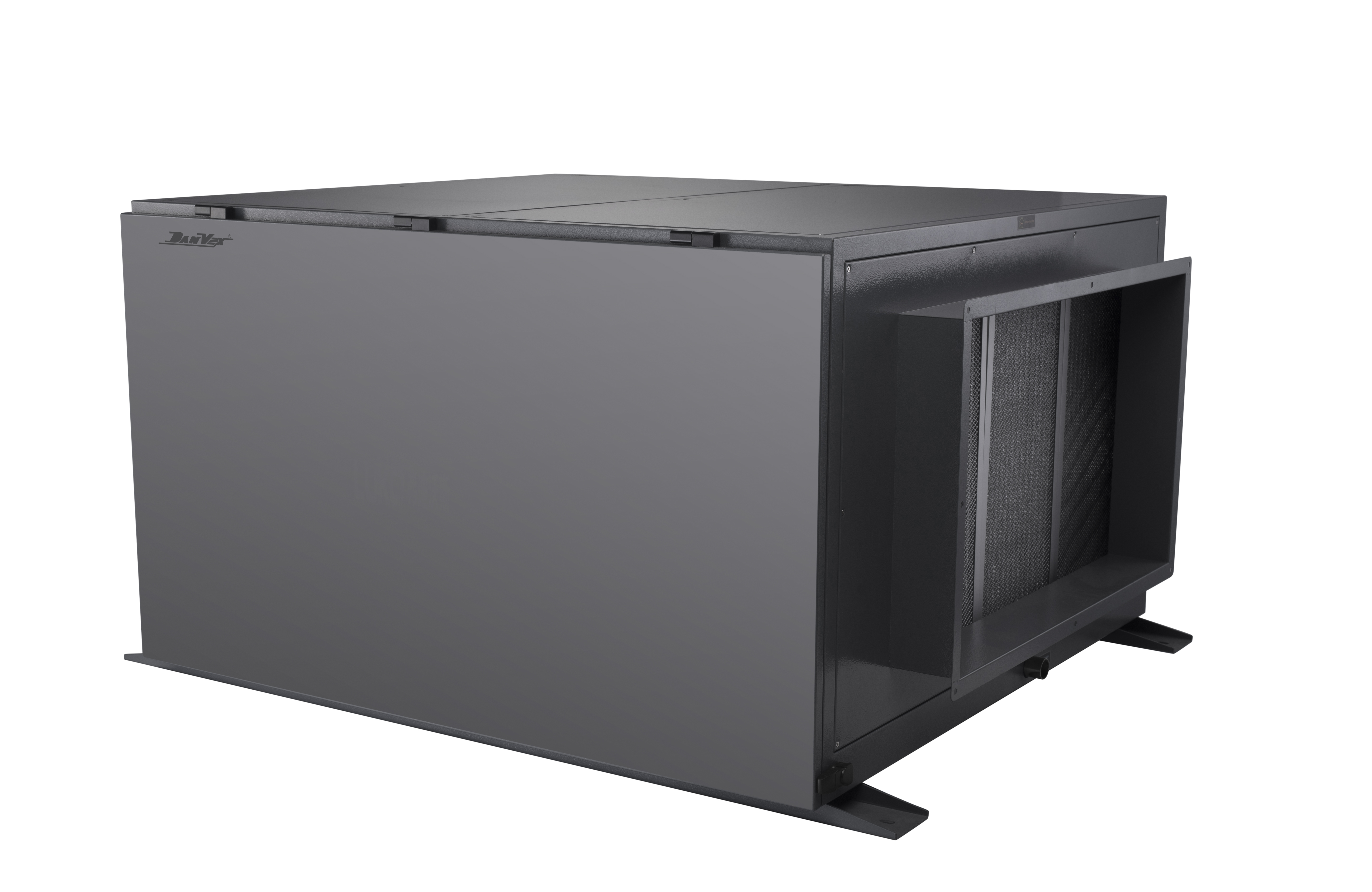 Канальные осушители воздуха DanVex серии DD. Осушители этой серии работают на основе метода конденсации влаги из воздуха и предназначены для осушения воздуха, подаваемого через воздуховоды. Осушители могут использоваться как самостоятельные установки (т.к. имеют в составе напорный вентилятор), так и в составе вентиляционной системы.