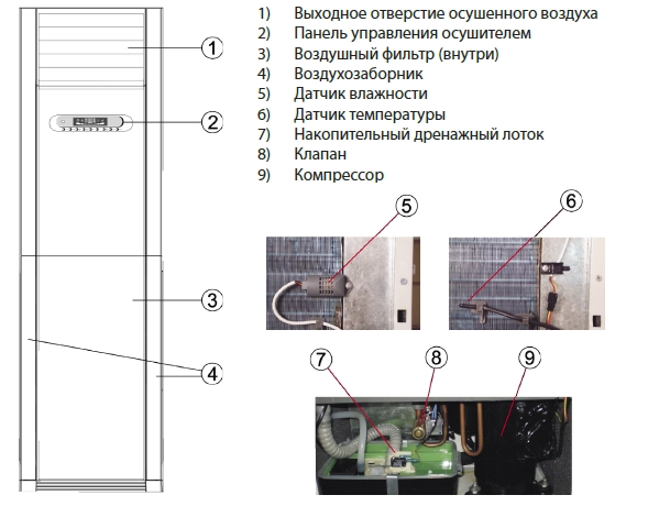 На панели управления DanVex DEH - 1200p расположен ЖК дисплей для проверки функций системы. Полностью автоматическая система управления осушителем воздуха DanVex, бесперебойный регулируемый гигростат, интегрированная переливная система, а также, соединение гибким шлангом, для непосредственного отведения конденсации гарантируют безотказную и долговременную эксплуатацию установки.