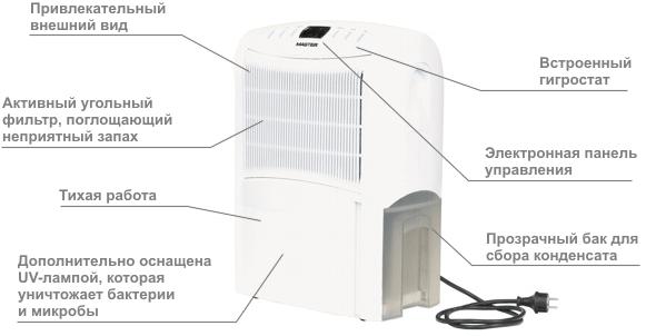 Осушитель воздуха Master DH 720 удаляет влагу из помещений, предотвращая образование плесени и размножение вредных бактерий. Активный угольный фильтр уничтожает неприятные запахи. Осушители воздуха Master находят широкое применение в квартирах, гаражах, подвалах, библиотеках, прачечных, ванных комнатах и т.д.
