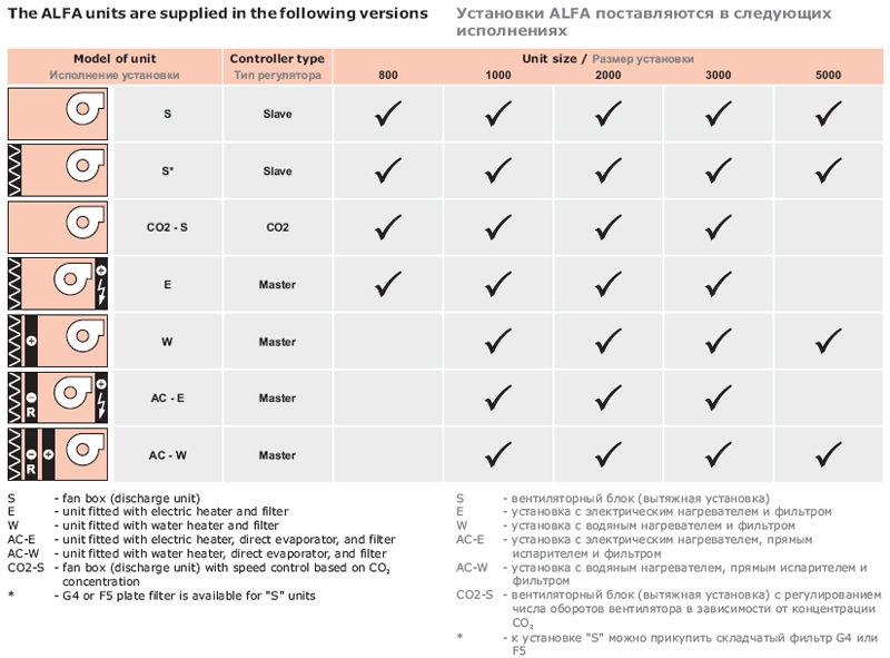 Рисунок №1 Установки ALFA поставляются в следующих исполнениях