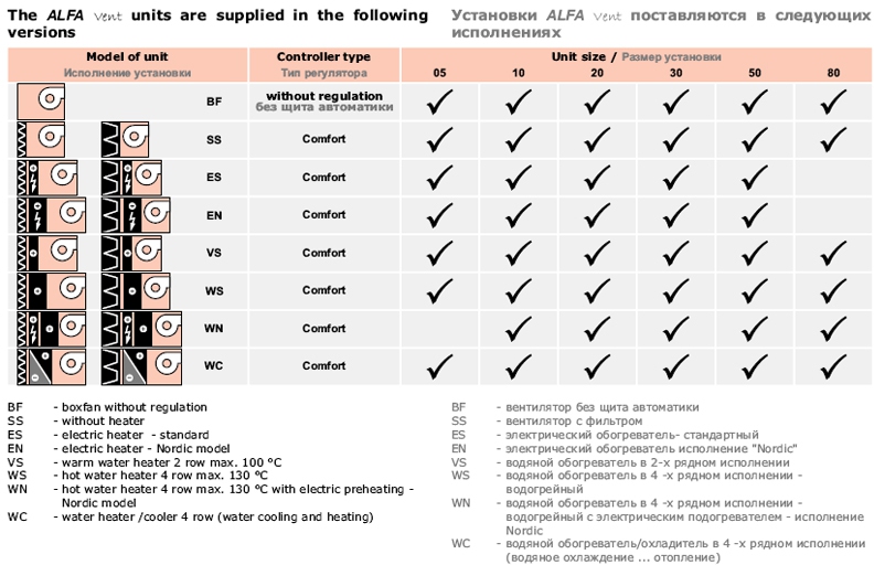 Рисунок №1 Установки ALFA Vent поставляются в следующих исполнениях