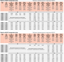 Таблица температурного перепада 70/50°C и 45/35°C
