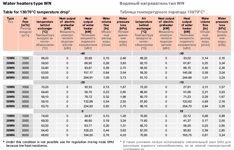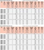 Таблица температурного перепада 130/70°C