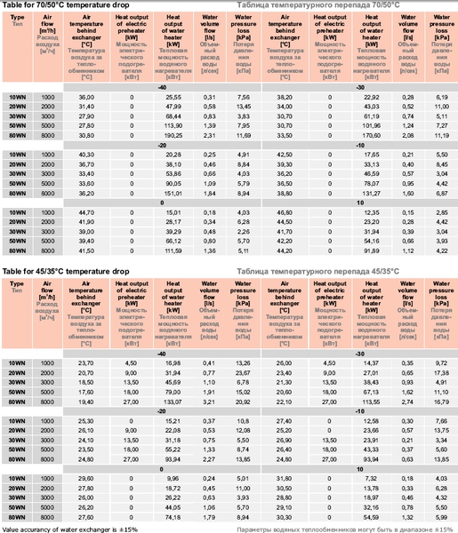 Основные технические параметры водяного обогревателя с электрическим подогревателем - исполнение Nordic