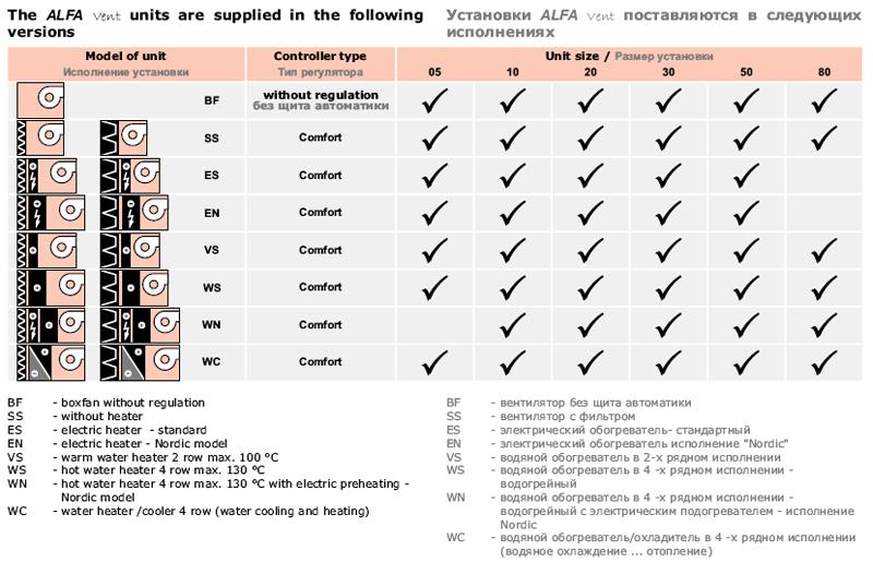 Рисунок №1 Установки ALFA Vent поставляются в следующих исполнениях