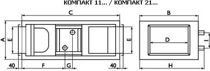 Таблица габаритных размеров приточных установок Компакт Арктос
