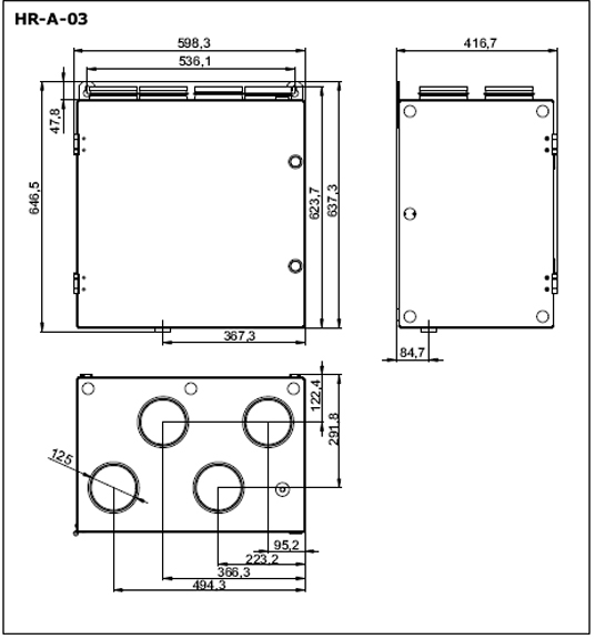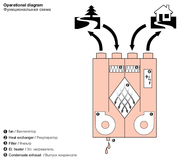 изготовлен из сэндвич панелей, покрыт белым лаком (9010). Степень электрической защиты устройства IP20. Проект вентиляционной установки должен всегда выполняться проектировщиком систем вентиляции.