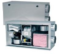 Конструкция: Корпус агрегата имеет 2-х стороннее покрытие из оцинкованной стали и изоляцию 50 мм. Агрегат укомплектован автоматикой (пульт управления не входит в комплект поставки и заказывается отдельно); двумя центробежными вентиляторами, приточным и вытяжным; роторным теплообменником (КПД до 85 %), фильтрами и нагревателем.