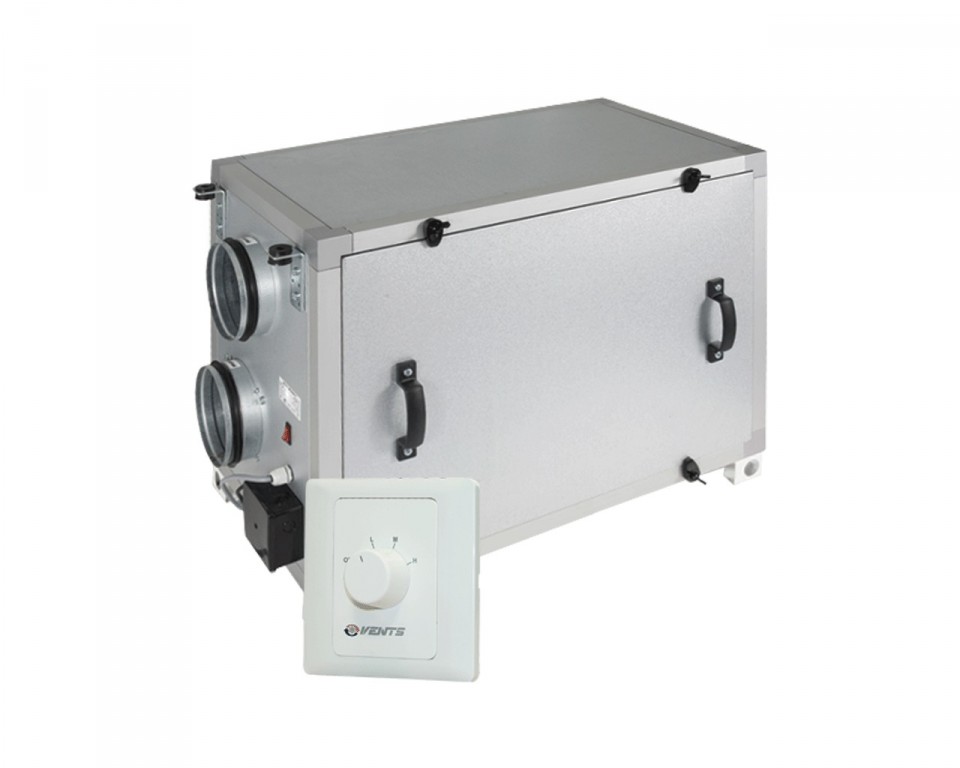 Звуко- и теплоизолированный вентиляционный агрегат. Обеспечивает поступление в помещения свежего отфильтрованного воздуха и вытяжку загрязнённого. Максимальная производительность - 350 м3/ч.