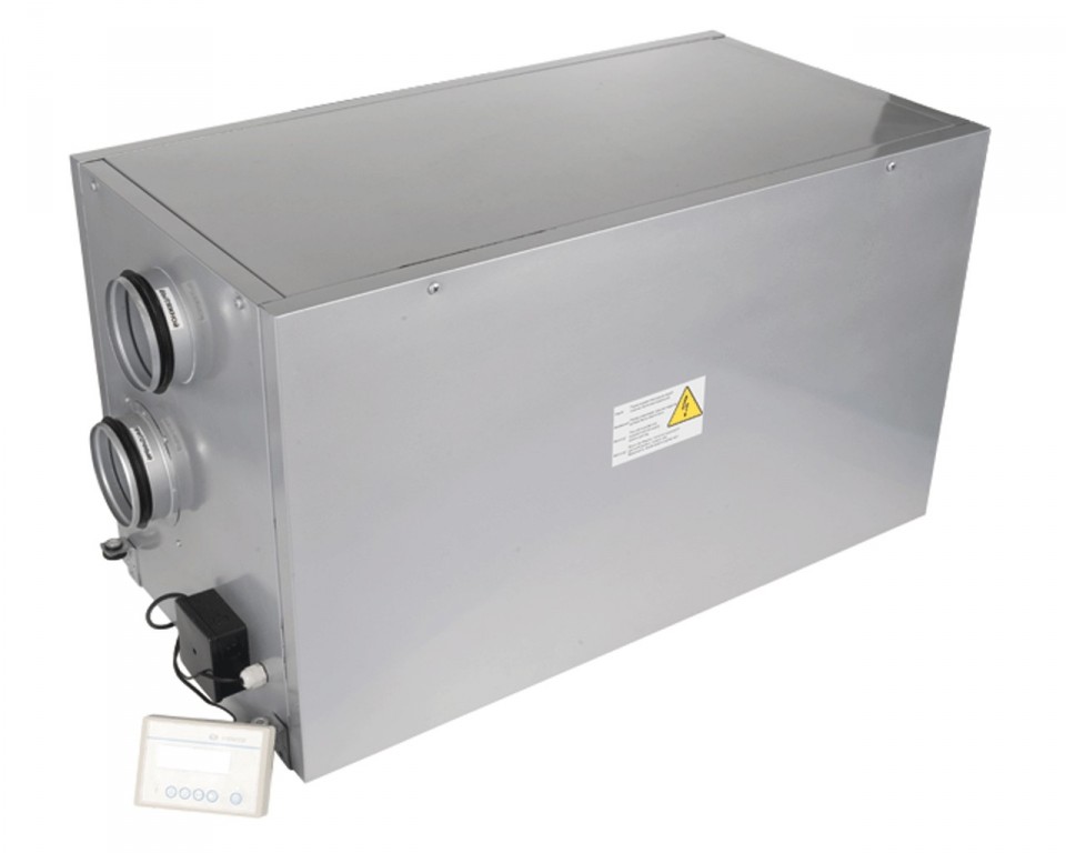 Приточно-вытяжная установка в звуко- и теплоизолированном корпусе с электронагревателем. Максимальная производительность - 600 м3/ч.