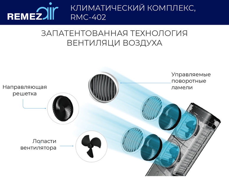 3. Синхронная работа двух вентиляторов и особая форма направляющей решетки создает мощный поток воздуха для эффективной вентиляции помещения.
