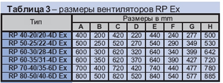 На рис. 5 и в таблице 3 указаны данные об основных размерах вентиляторов типа RР в исполнении Ех.