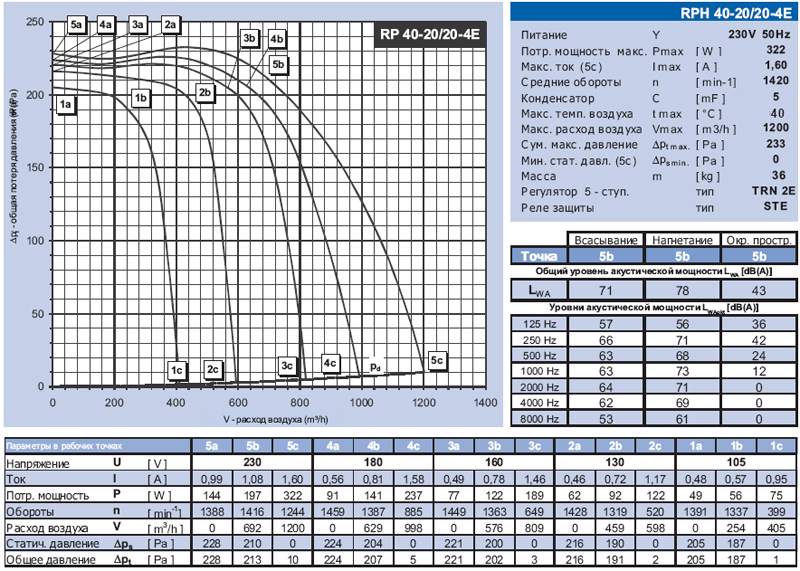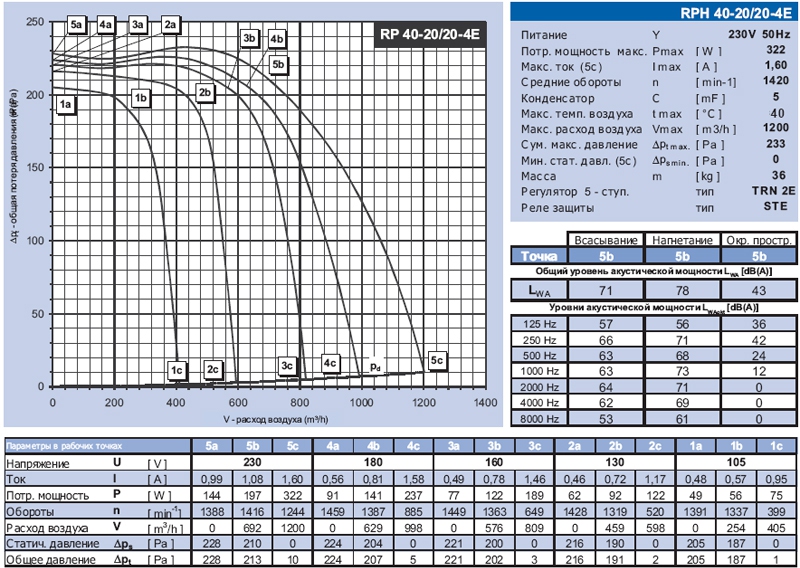Технические характеристики вентиляторов RPH