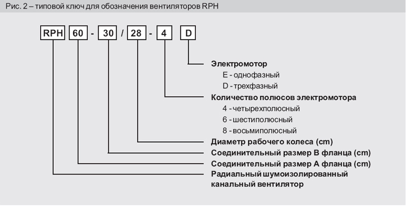 На рис. 2 указана схема для типового обозначения вентиляторов RРН в проектах и заявках.