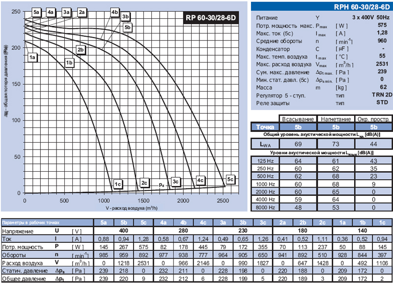 Технические характеристики вентиляторов RPH