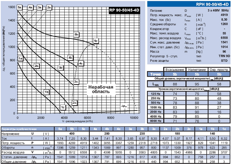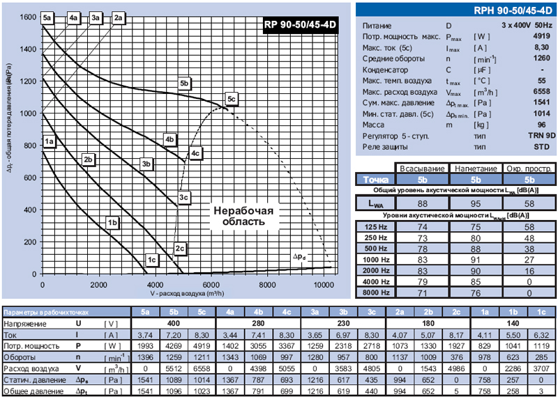Технические характеристики вентиляторов RPH