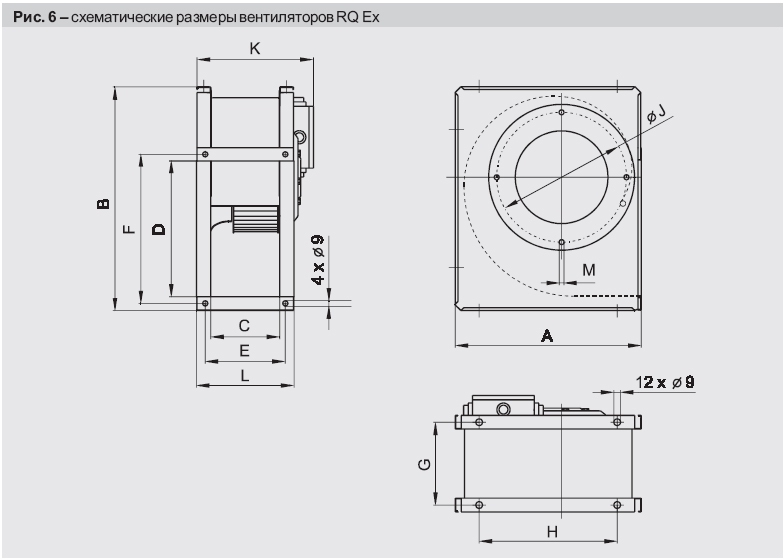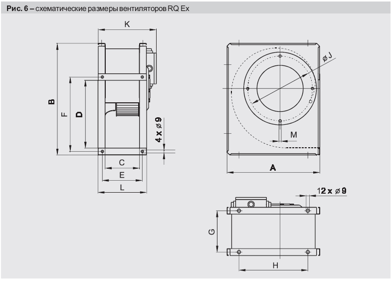 Рисунок №6 Схематические размеры вентиляторов RQ EX