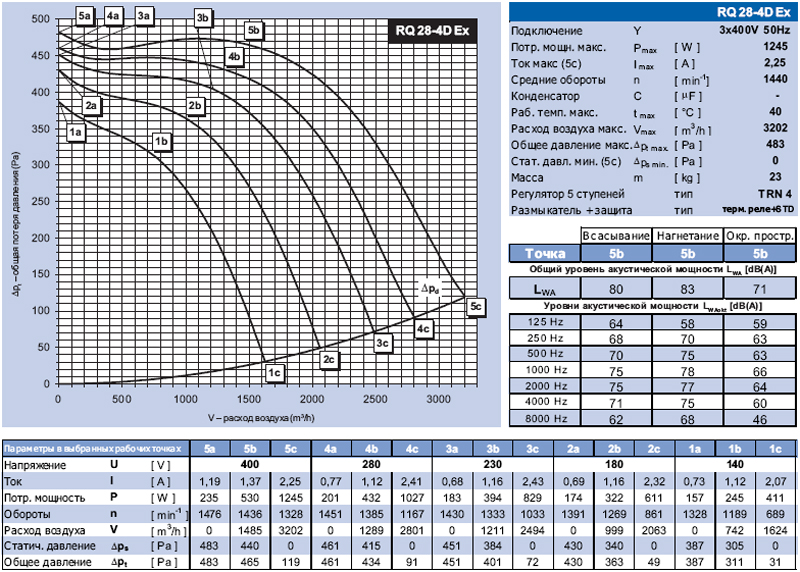 Обозначение RQ 28-4Р Ех или RР 60-30/28-4Р Ех специфицирует тип вентилятора, рабочего колеса и электромотора.