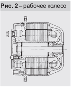 В качестве привода вентилятора применены асинхронные 1-фазные и 3-фазные компактные электромоторы с внешним ротором и омическим якорем с соответствующей мощности и количеством оборотов, утвержденные согласно директивы 94/9/ЕS (АТЕХ), см. рис 2. Электромоторы находятся внутри рабочего колеса, что позволяет охлаждать их при работе поступающим воздухом. Высококачественные, самосмазывающиеся