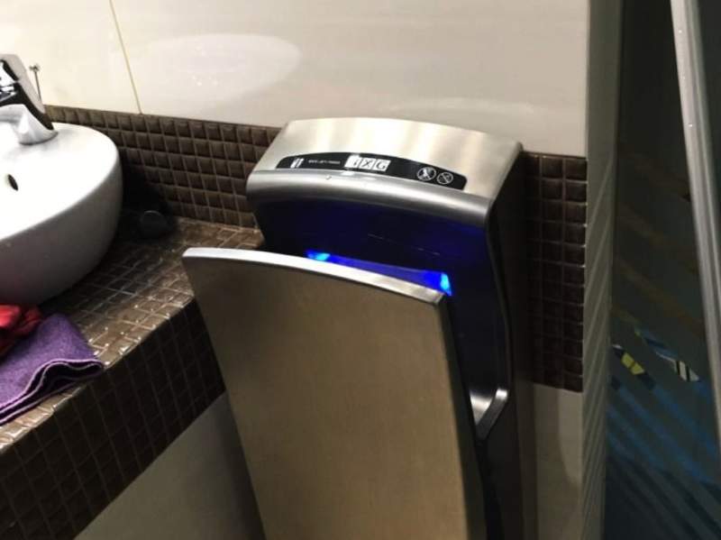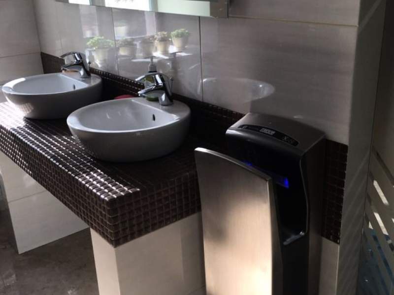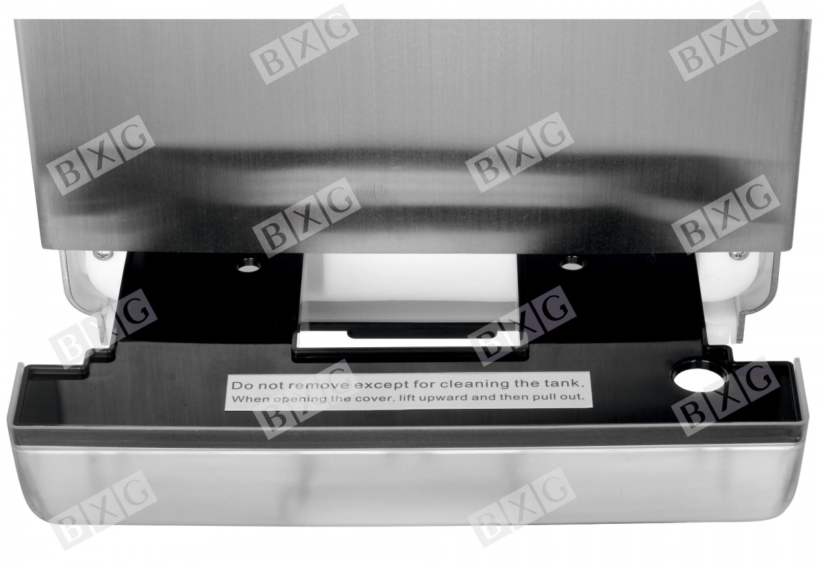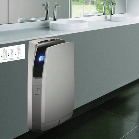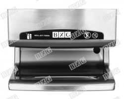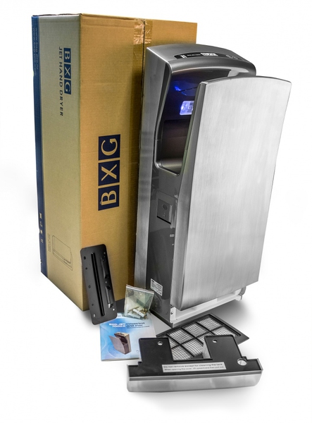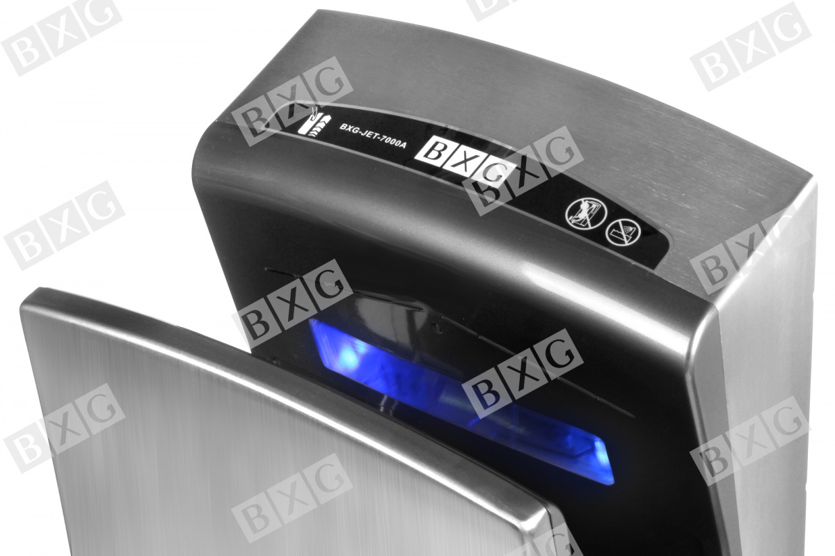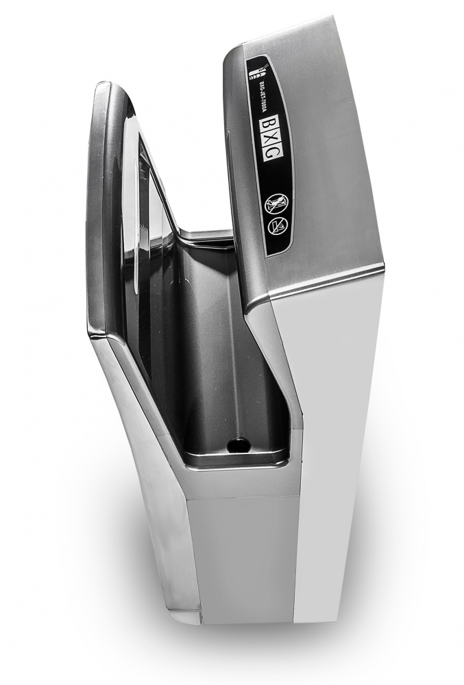 Высокоскоростная электросушилка для рук BXG-JET 7000A имеет знак «Зеленый щит» за безопасность и гигиеничность. Бесконтактное управление (благодаря инфракрасным датчикам), исключает контакт с поверхностью прибора и, как следствие, снижается уровень возможности передачи микробов и бактерий. Кроме того, возможные зоны контакта с руками и зоны, на которые попадает влага «сдутая» с рук, покрыты специальным антибактериальным покрытием, активные элементы которого уничтожают до 99% бактерий, препятствуют возникновению грибков и плесени. Встроенные, мембранный и угольный, фильтры обеспечивают тройную очистку воздуха, который подается для обдува рук.