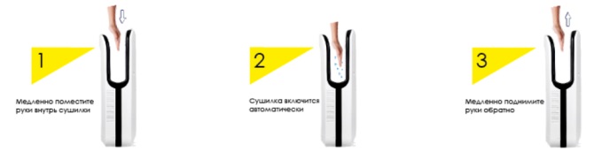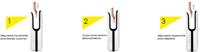 В устройстве применены самые передовые промышленные технологии. 2 температурных режима: горячий (принудительный) и автоматический, при котором сушилка сама определит необходимую комфортную температуру, подаваемую на руки, в зависимости от температуры окружающей среды.