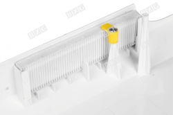 Усовершенствованная система сбора капель и воды - элементы сушилки, у которых риск образования микробов, плесени и грибков наиболее высокий, имеют дополнительное антибактериальное покрытие - такие элементы окрашены желтым цветом; увеличенный объем водосборника - 1 литр; встроенный индикатор наполнения водосборника - когда водосборник наполнится водой загорится индикатор, расположенный на панели управления, указывая о необходимости очистки водосборника.