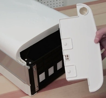 В модели EHDA/HPF-1200W реализована технология двустороннего обдува Counter Flow, представляющая собой систему отверстий с обеих сторон сушильного отсека, которая позволяет сушить руки одновременно с двух сторон мощными потоками теплого воздуха. Использование этой технологии делает процесс сушки рук более удобным, а помещение – чистым, поскольку вода, сдуваемая с рук в виде капель и брызг, попадает на дно сушильного отсека и стекает в специальную емкость – контейнер. Данный контейнер, расположенный на нижней стороне прибора, легко снимается и осушается.