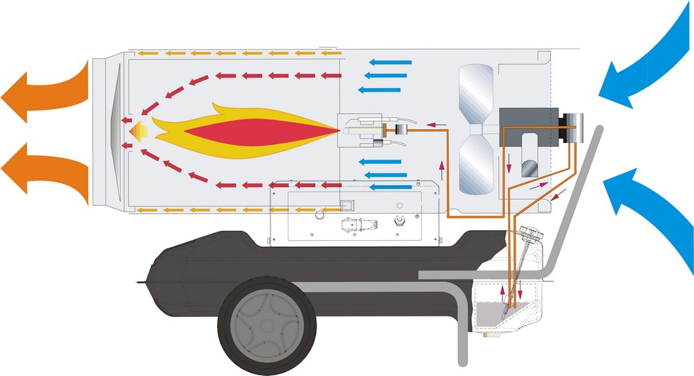 Жидкотопливные нагреватели воздуха прямого нагрева рекомендуется использовать в хорошо проветриваемых помещениях!