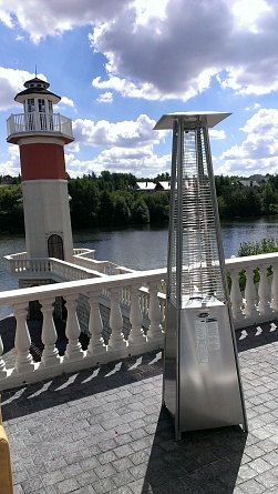 Уличный обогреватель в форме пирамиды с эффектом открытого пламени прекрасно украсит любой уголок Вашей веранды, террасы.