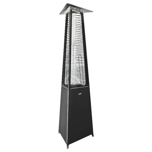 Газовый уличный обогреватель Falo с живым полутораметровым пламенем, заключенным в колбу из закаленного стекла, в металлическом корпусе.