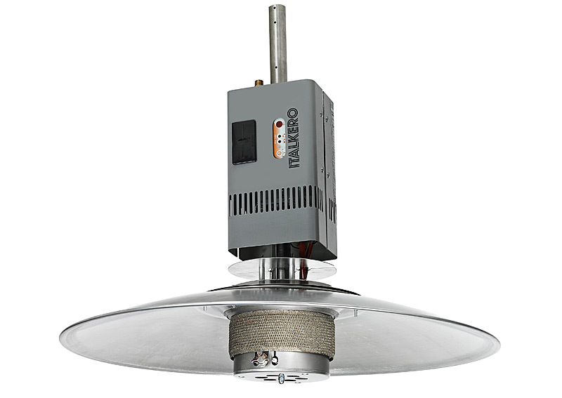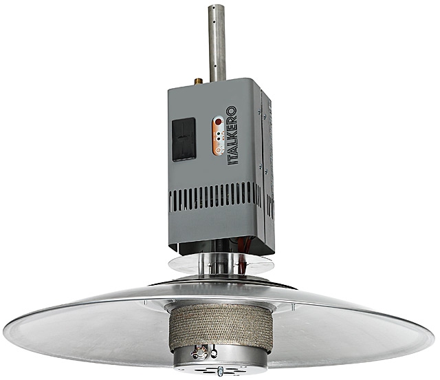 Потолочный газовый обогреватель Italkero Spider может устанавливаться как на стене с помощью кронштейна, так подвешиваться на потолке. В качестве топлива может использоваться сжиженный газ (пропан/бутан) или магистральный газ (метан). Управляется обогреватель с помощью дистанционного пульта. Газовый обогреватель Italkero Spider лучшее решение для небольших пространств.