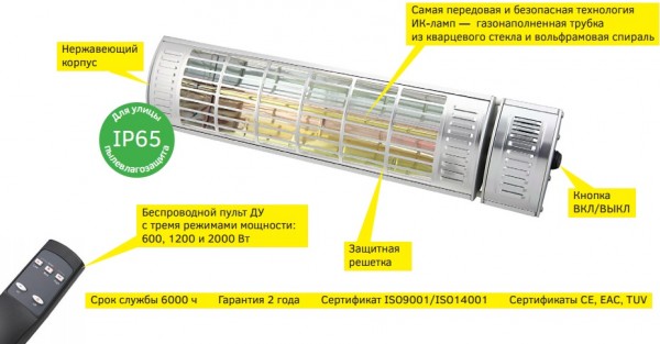 Обогреватель Stromm 6-20R представляет собой воплощение самых совершенных технологий в области инфракрасного обогрева. В нем используются коротковолновые лампы самой последней разработки, покрытые специальным золотым напылением изнутри и снаружи. За счет этого напыления яркость снижена на 80%, а мощность остается та же! Кроме того обогреватель обладет уровнем защиты IP65, а это значит, что обогревателю не страшно прямое воздействие воды и пыли. По сравнению с газовыми уличными обогревателями, использование инфракрасного обогревателя в 2,5 раза дешевле, но при этом у него больше площадь обогрева!