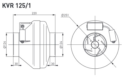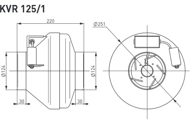 Рабочий диапазон температур перемещаемого воздуха от -40°C до +50°C (для вентилятора KVR 315/1 до +40°C).