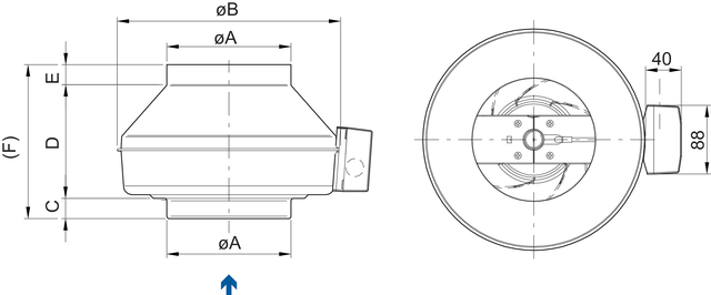 Монтаж: Вентиляторы К устанавливаются непосредственно в воздуховодах круглого сечения. Допускается монтаж под любым углом относительно оси вентилятора, а также во влажных помещениях и на улице без дополнительной защиты (при подсоединении воздуховодов к вентилятору с обеих сторон). В комплекте поставляется монтажный кронштейн с винтами для быстрого и удобного монтажа вентилятора на стену или потолок. Хомуты FK (дополнительная принадлежность) облегчают монтаж и демонтаж, а также предотвращают передачу вибрации на воздуховод.