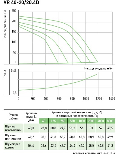 Рабочие колёса из оцинкованного стального листа. В вентиляторе VR 100-50/63.4D используется «свободное» рабочее колесо с назад загнутыми лопатками, в остальных вентиляторах рабочие колёса с вперед загнутыми лопатками расположены в спиральном кожухе. Конструкция корпуса, кожуха и диффузоров позволяет получить высокие аэродинамические характеристики вентиляторов.