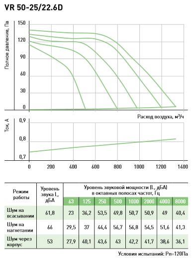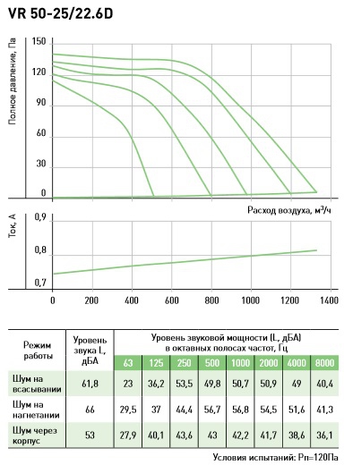 Рабочие колёса из оцинкованного стального листа. В вентиляторе VR 100-50/63.4D используется «свободное» рабочее колесо с назад загнутыми лопатками, в остальных вентиляторах рабочие колёса с вперед загнутыми лопатками расположены в спиральном кожухе. Конструкция корпуса, кожуха и диффузоров позволяет получить высокие аэродинамические характеристики вентиляторов.