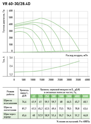 Рабочие колёса из оцинкованного стального листа. В вентиляторе VR 100-50/63.4D используется «свободное» рабочее колесо с назад загнутыми лопатками, в остальных вентиляторах рабочие колёса с вперед загнутыми лопатками расположены в спиральном кожухе. Конструкция корпуса, кожуха и диффузоров позволяет получить высокие аэродинамические характеристики вентиляторов.