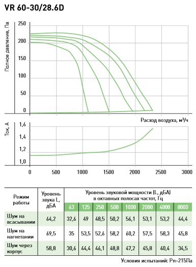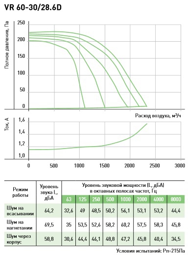 Рабочие колёса из оцинкованного стального листа. В вентиляторе VR 100-50/63.4D используется «свободное» рабочее колесо с назад загнутыми лопатками, в остальных вентиляторах рабочие колёса с вперед загнутыми лопатками расположены в спиральном кожухе. Конструкция корпуса, кожуха и диффузоров позволяет получить высокие аэродинамические характеристики вентиляторов.