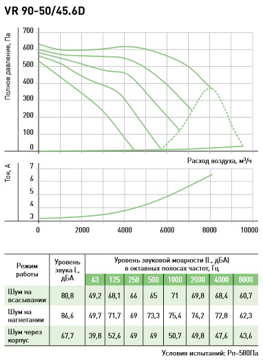 Рабочие колёса из оцинкованного стального листа. В вентиляторе VR 100-50/63.4D используется «свободное» рабочее колесо с назад загнутыми лопатками, в остальных вентиляторах рабочие колёса с вперед загнутыми лопатками расположены в спиральном кожухе. Конструкция корпуса, кожуха и диффузоров позволяет получить высокие аэродинамические характеристики вентиляторов.