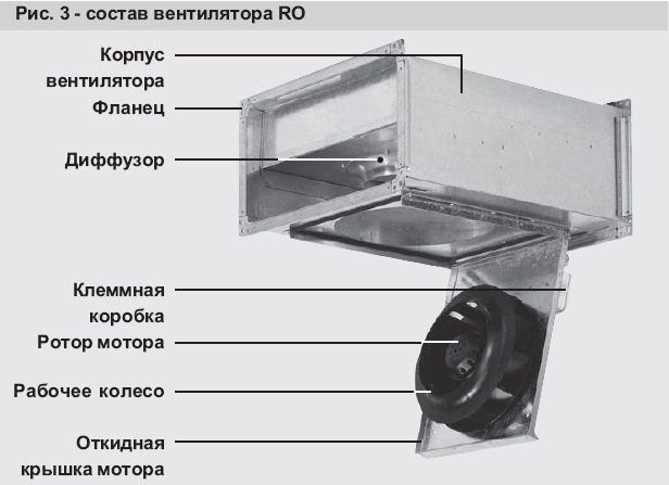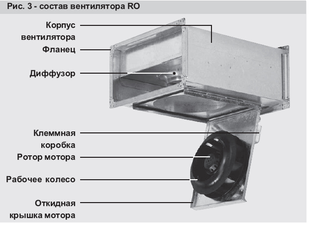 Вентиляторы предназначены для внутреннего и наружного применения, для перемещения воздуха без твердых, волокнистых, клеящихся, агрессивных и взрывоопасных примесей, а также химических веществ, способствующих коррозии или химическому разложению алюминия и цинка. При наружном применении вентиляторы необходимо окрасить защитной краской (избегая окраску заводских щитков). Допустимая температура перемещаемого воздуха находится в пределах от -15°С до +40°С (у некоторых типов +70°С. Вентиляторы RО могут работать в любом положении. Для снижения потерь давления в системе рекомендуется, монтировать на вытяжку вентилятора прямой участок воздуховода длиной 1 -1,5 мм.