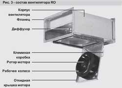 Корпус вентилятора RО и соединительные фланцы изготавливаются из оцинкованного листа. Рабочие колеса из алюминиевого листа или пластмассы, диффузоры из алюминия, электромоторы из сплавов алюминия, меди и пластмасс. Все материалы обеспечивают длительный ресурс и надежность работы вентиляторов. Рабочие колеса тщательно статически и динамически сбалансированы с мотором.