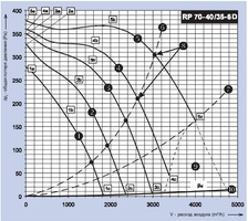 Вентиляторы RР имеют 9 типоразмеров в зависимости от размеров соединительного фланца (АхВ). Каждому типоразмеру соответствует несколько вентиляторов, отличающихся количеством полюсов электромотора. При выборе вентилятора на требуемый расход воздуха и давление, действует правило: вентиляторы