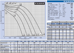 Вентиляторы RР имеют 9 типоразмеров в зависимости от размеров соединительного фланца (АхВ). Каждому типоразмеру соответствует несколько вентиляторов, отличающихся количеством полюсов электромотора. При выборе вентилятора на требуемый расход воздуха и давление, действует правило: вентиляторы
