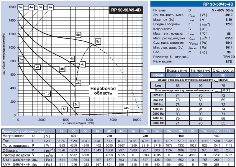 Для реального вентиляционного оборудования величины уровня акустич. мощности будут скорее всего приближаться к величинам, действующим в точке 5Ь.
